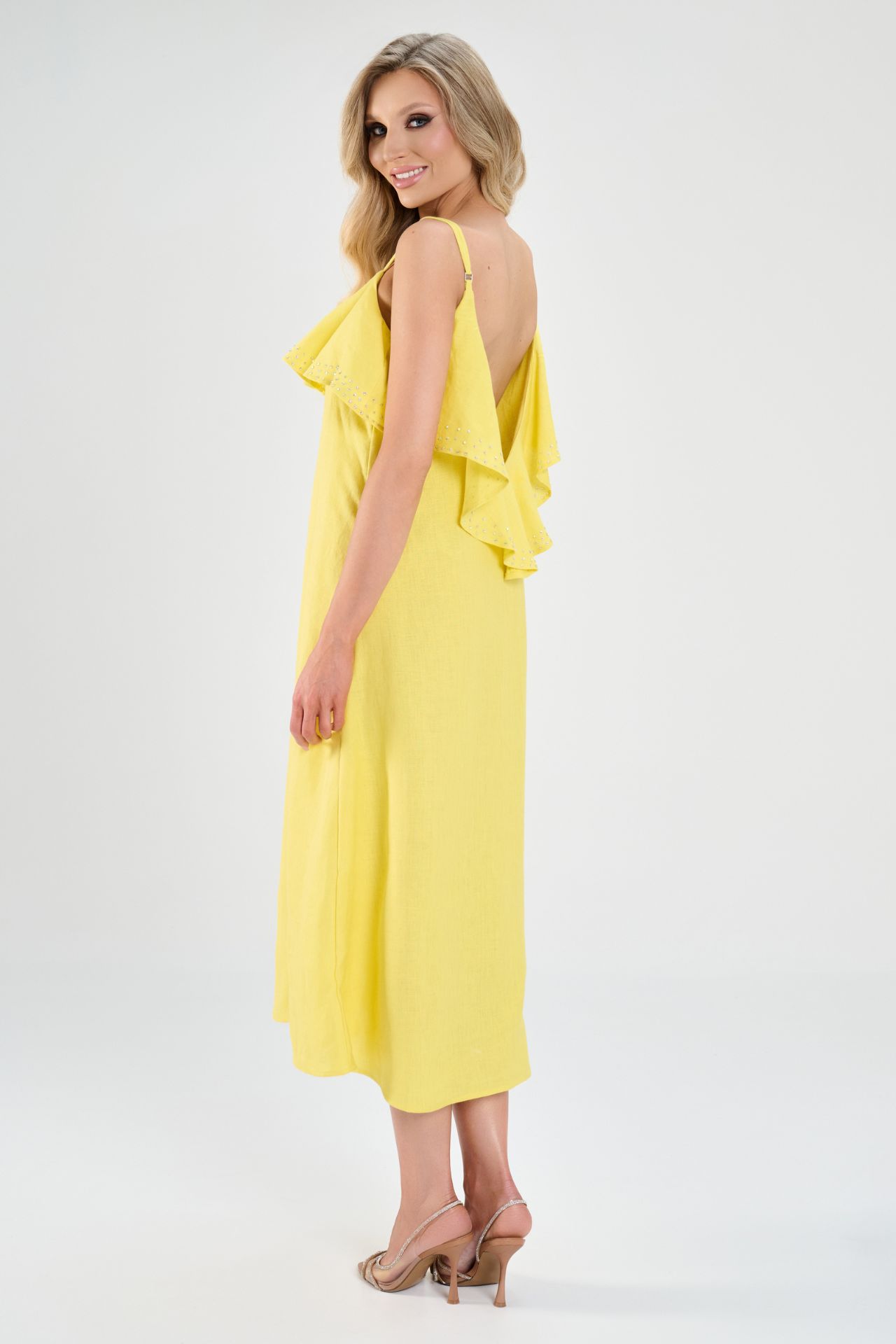 Sukienka „Letnie Słońce” to promień radości i ciepła w Twojej letniej garderobie. Intensywnie żółty len wprowadza optymizm i świeżość, a swobodny krój zapewnia niezrównany komfort każdego dnia.
